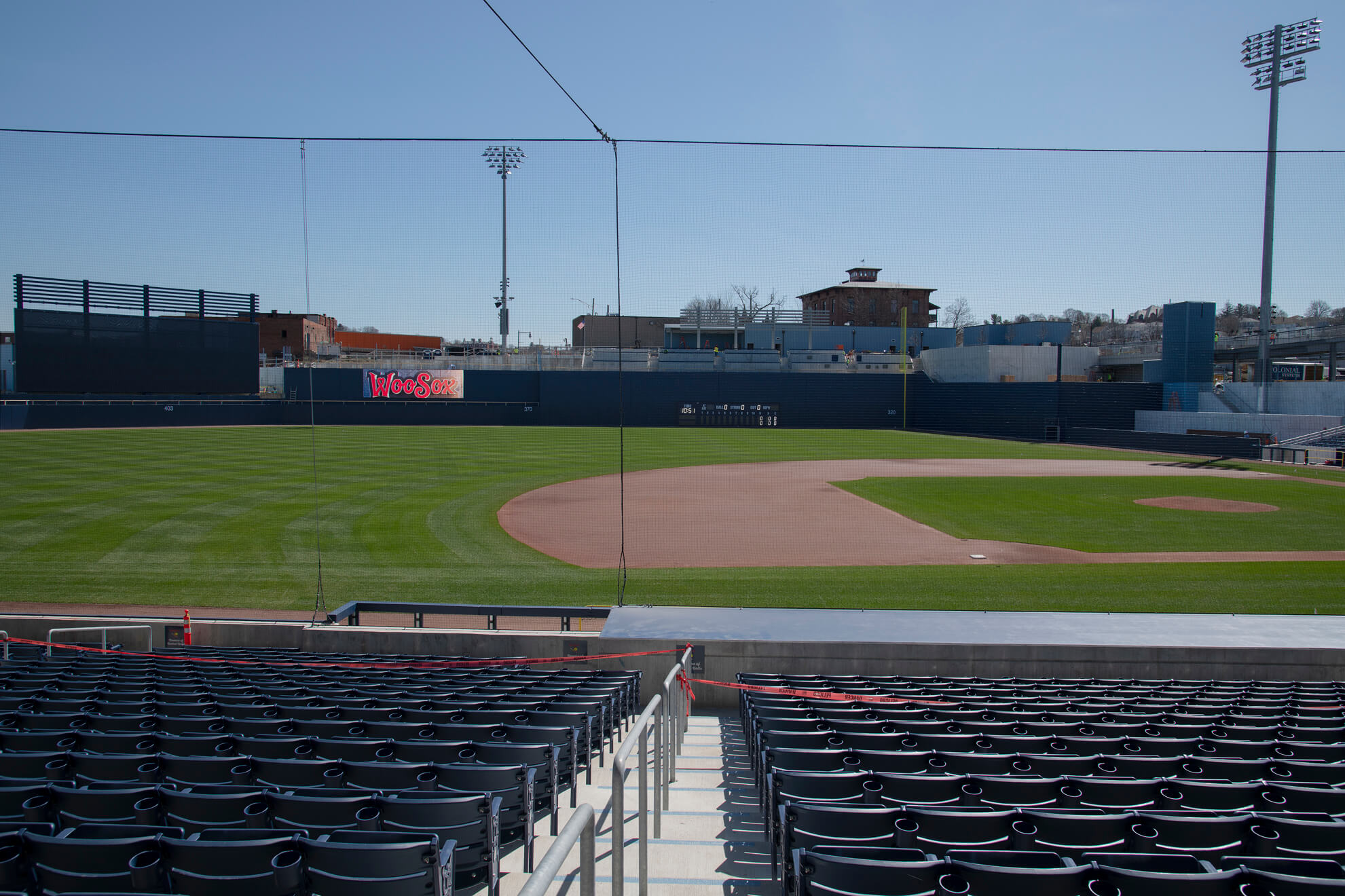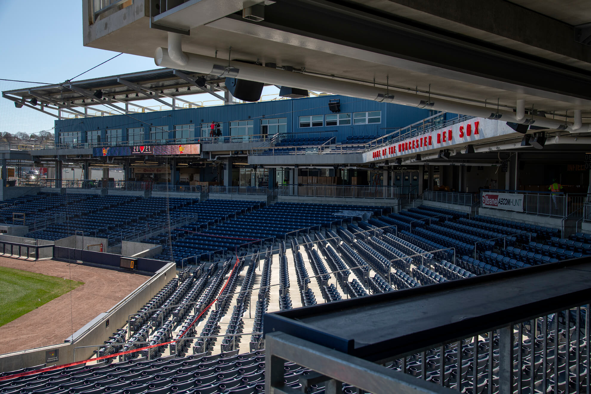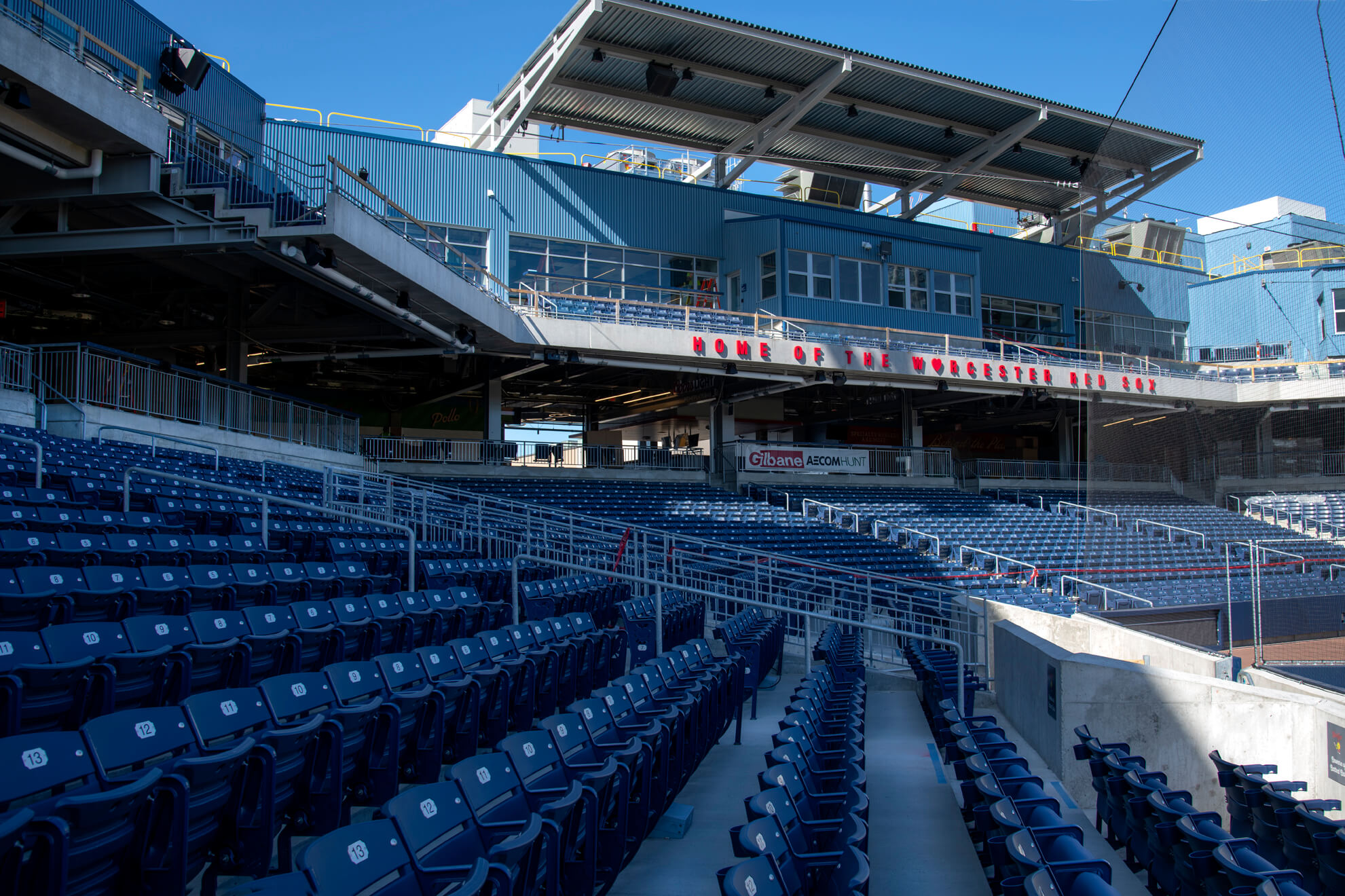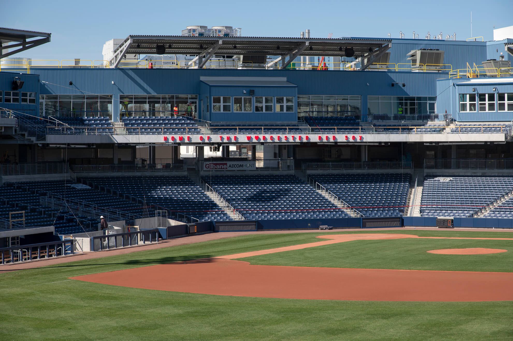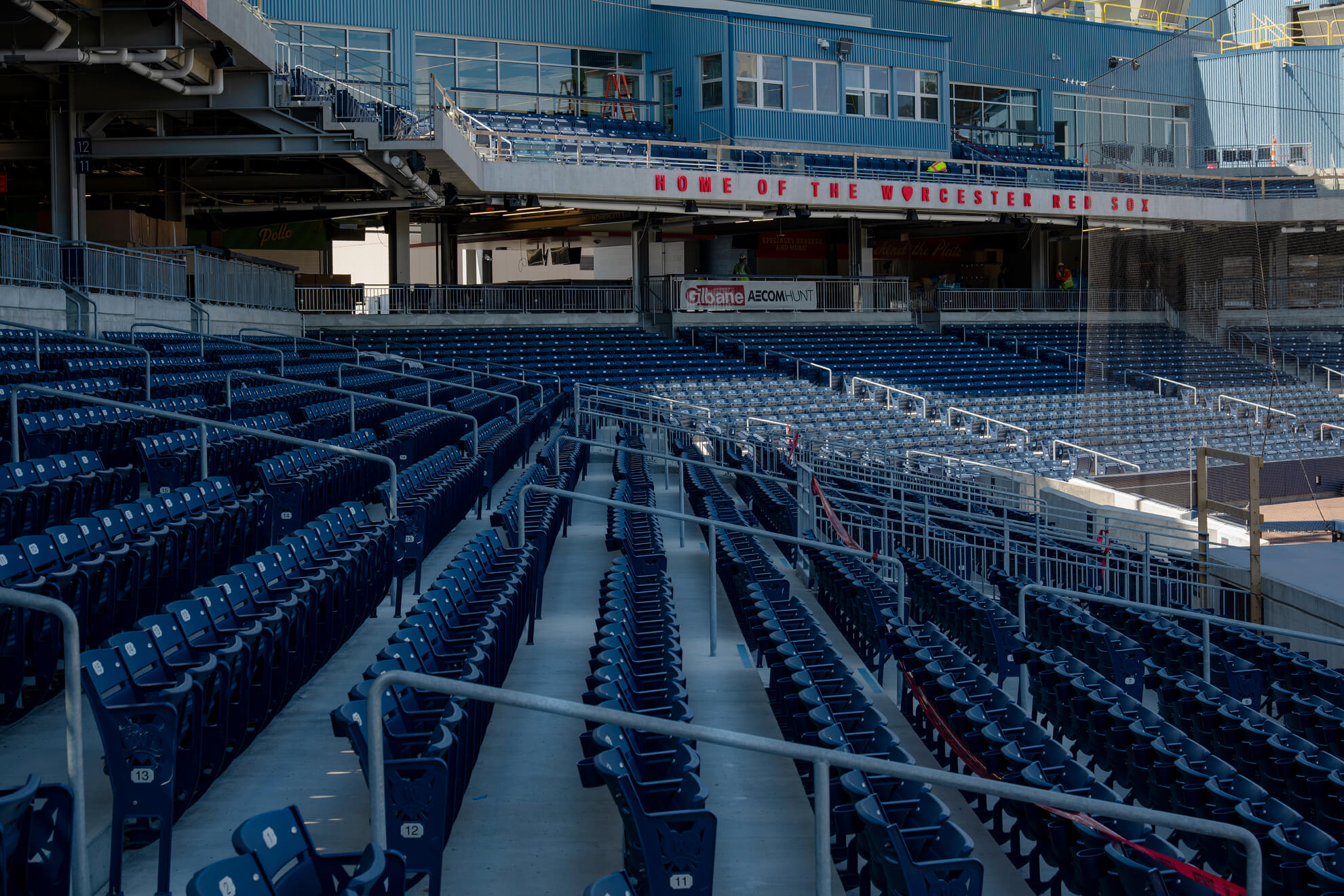 Located in famed Kelley Square, Worcester’s new ballpark sits in the heart of the city’s resurgent Canal District. The ballpark is the new home of the WooSox, the Red Sox Triple-A affiliate. As fans sit in their seats, they can see the Providence & Worcester Railroad train pass by over the left-field wall. Designed by renowned sports stadium architect, Janet Marie Smith, the new park fits in seamlessly with Worcester’s industrial, mill-town roots.