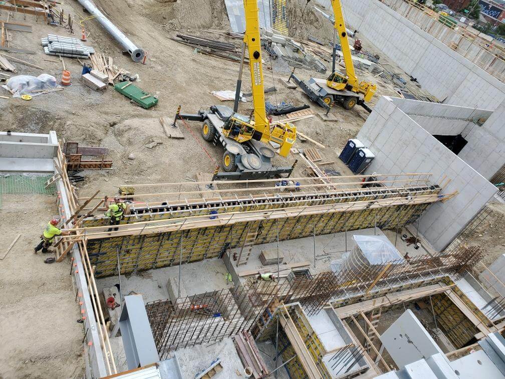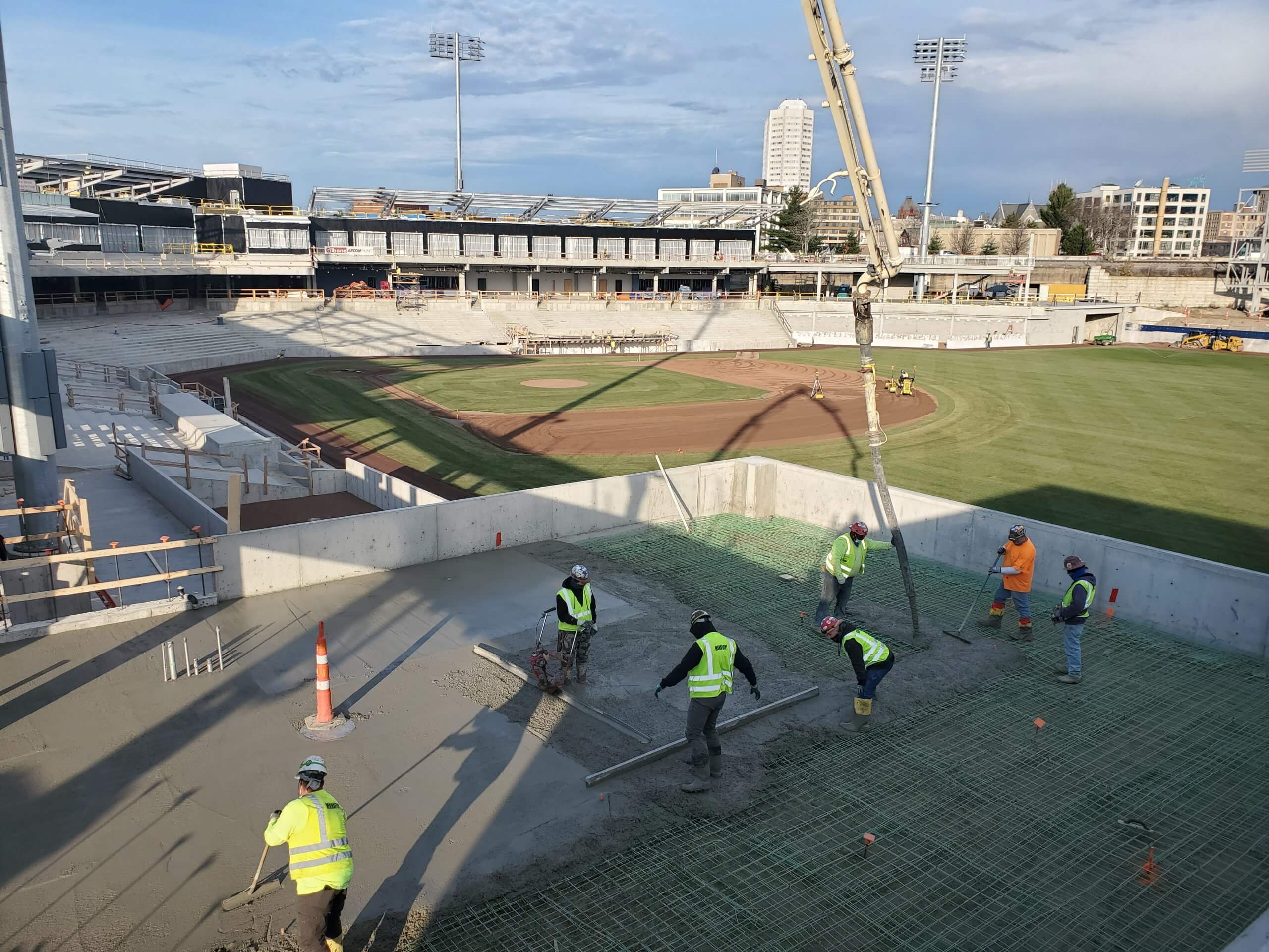 Manafort-Precision was selected to perform the concrete work for the 10,000-person ballpark, the Left Field Office Building, and the 500-space Parking Garage. Manafort’s scope of work included the foundations, slabs on grade, slabs on deck, stadium light tower bases, terraced bowl seating, and dugouts. Of special importance to our crews was building the Worcester Wall in the right field. The project consisted of over 17,500 cubic yards of concrete and over 850 tons of reinforcing steel. All work was self-performed.